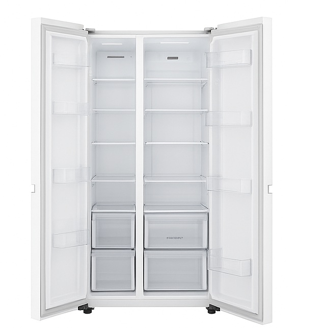 بدنهی سفید براق و مینیمال این یخچال بهراحتی با هر نوع دکوراسیون آشپزخانه هماهنگ میشود. دربها دارای طراحی Door-in-Door هستند که به کاربر اجازه میدهد بدون باز کردن کامل یخچال، به مواد غذایی پرمصرف مانند نوشیدنیها، لبنیات یا میانوعدهها دسترسی سریع داشته باشد. این ویژگی علاوه بر راحتی، باعث کاهش اتلاف هوای سرد و در نتیجه صرفهجویی در انرژی میشود.