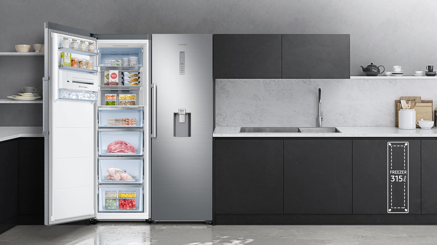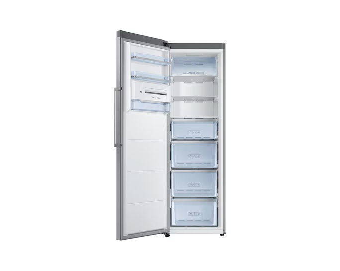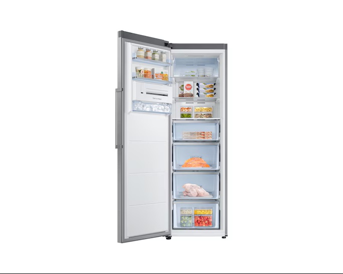 فریزر RZ32M71207F با ظرفیت 321 لیتر و طراحی کشوهای متعدد، امکان نگهداری مواد غذایی منجمد و گوشت، سبزیجات و خوراکیهای بستهبندی شده را به آسانی فراهم میکند. سیستم خنککنندگی جداگانه در این فریزر باعث میشود دما به طور یکنواخت در تمام بخشها حفظ شود و مواد غذایی بدون یخ زدگی غیرضروری تازه بمانند. این ویژگی باعث کاهش هدررفت مواد غذایی و بهینهسازی مصرف انرژی میشود.